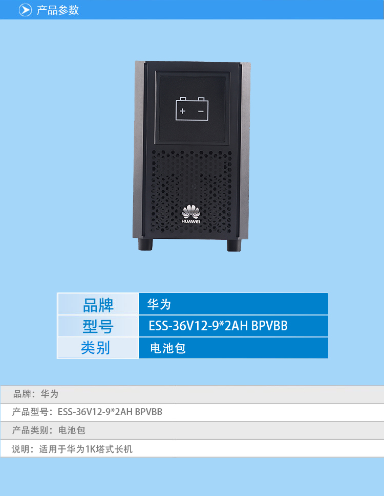 华为 UPS不间断电源 ESS-36V12-9*2AH BPVBB 塔式1K长机用 电池包