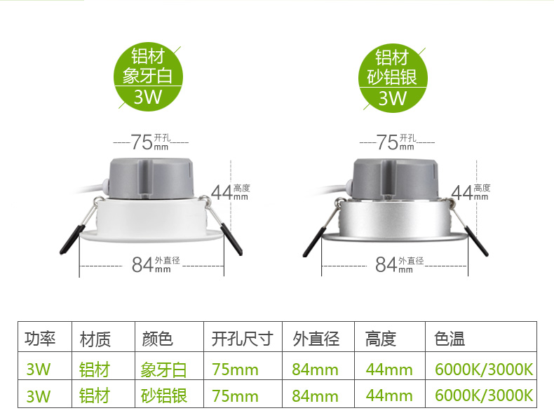 阳光照明 炫 LED三色凹面筒灯 YGE00A21-5.5/5W/6500K/φ85mm